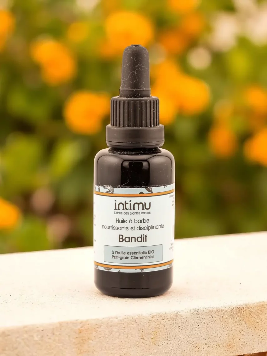 Composition : Huile à barbe Bandit Intímu 30ml – Abricot, jojoba & Petitgrain Clémentinier, nourrissante & apaisante, bio