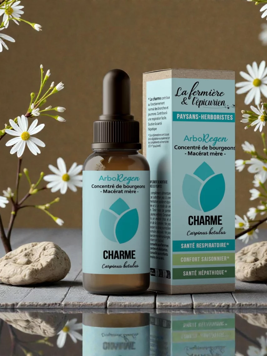 Macérat mère Bio de charme élaboré par Elise pour accompagner la respiration, soutenir le tonus général et harmoniser les terrains sensibles aux allergies saisonnières.