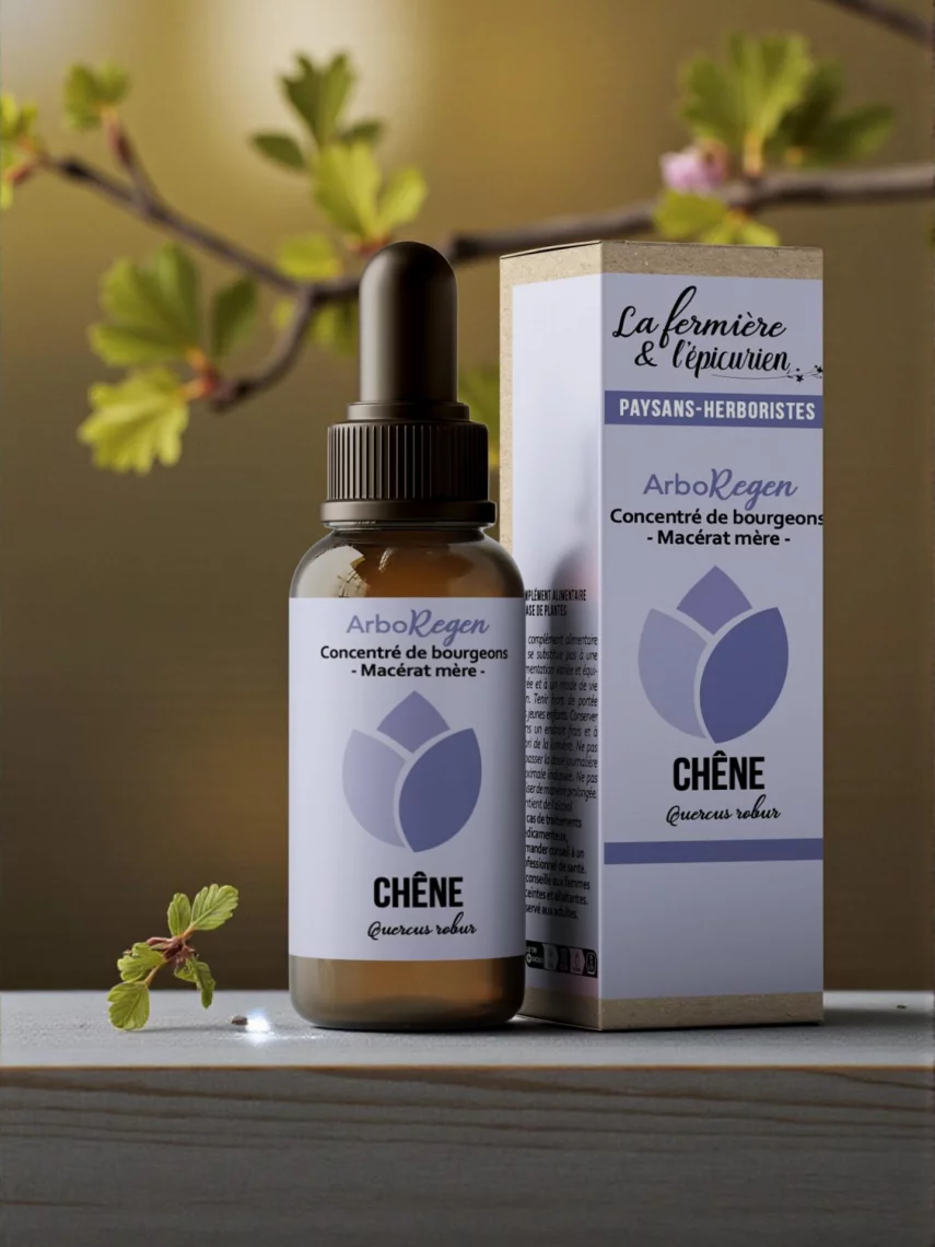 Macérat mère Bio de chêne élaboré par Elise pour renforcer la vitalité, soutenir l énergie profonde et accompagner les périodes de fatigue physique ou nerveuse.