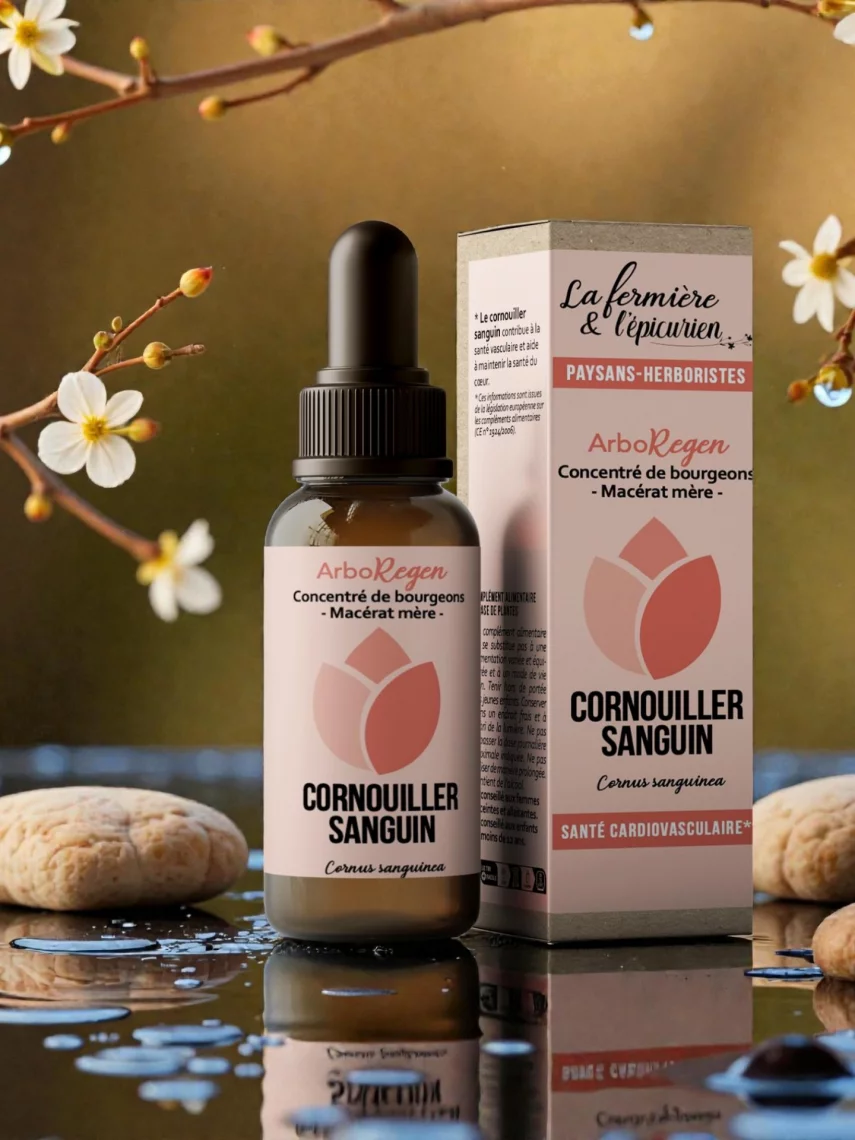 Élaboré avec soin par Elise, ce macérat mère associe des bourgeons frais de cornouiller sanguin à du miel d acacia, de l alcool vinique et de l eau de source. Le bourgeon est traditionnellement reconnu pour favoriser la circulation, accompagner les jambes lourdes et soutenir les terrains veineux sensibles.