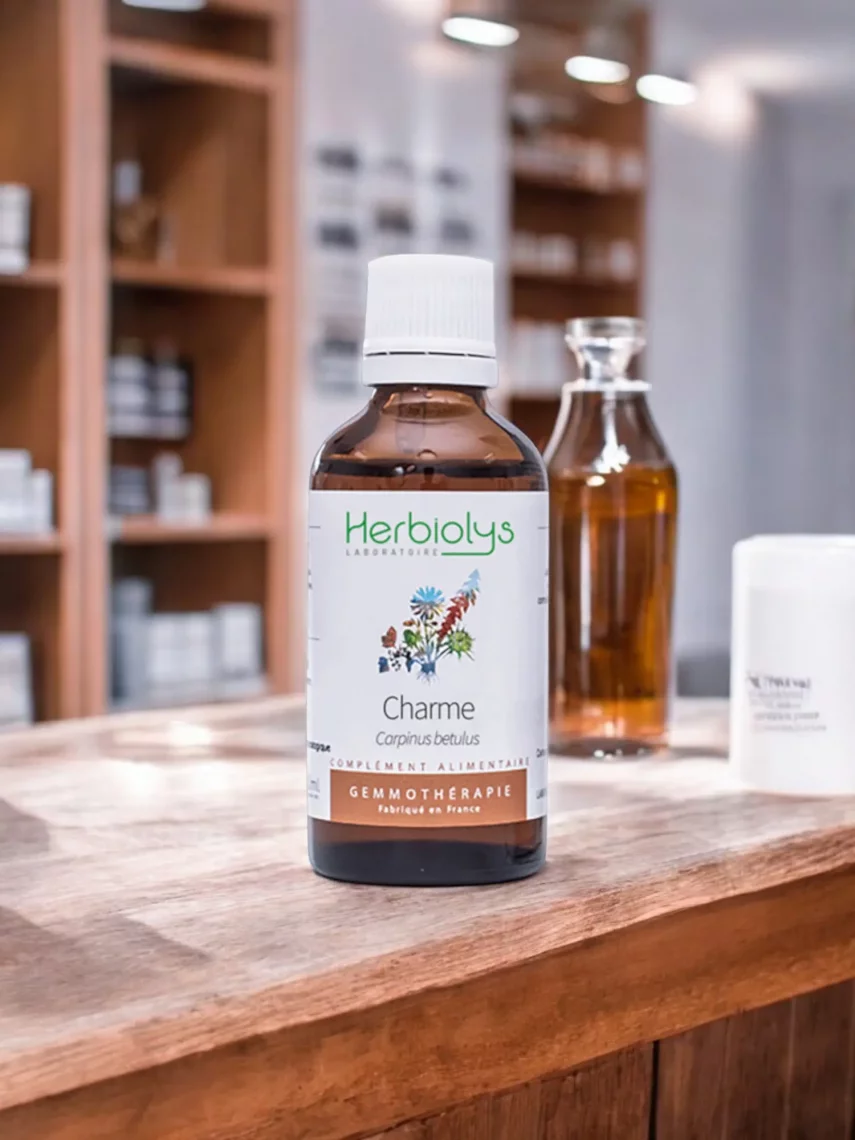 Macérat de bourgeons bio de Charme (Carpinus betulus), élaboré à partir de bourgeons frais récoltés manuellement en France et mis en macération immédiate sur le lieu de cueillette. Ce procédé artisanal respecte les principes de la gemmothérapie traditionnelle