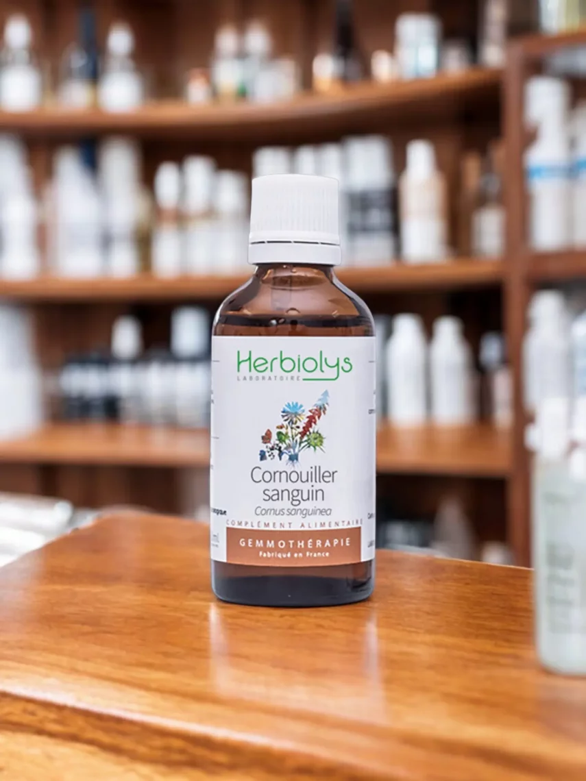 Macérat de bourgeons bio de Cornouiller sanguin (Cornus sanguinea), élaboré à partir de bourgeons frais récoltés manuellement en France, mis en macération immédiate sur le lieu de cueillette. Ce procédé artisanal respecte les principes de la gemmothérapie traditionnelle.