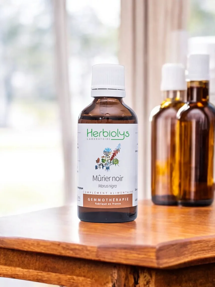 Composition : Macérat de bourgeons bio de Mûrier noir (Morus nigra) – Régulation de la glycémie