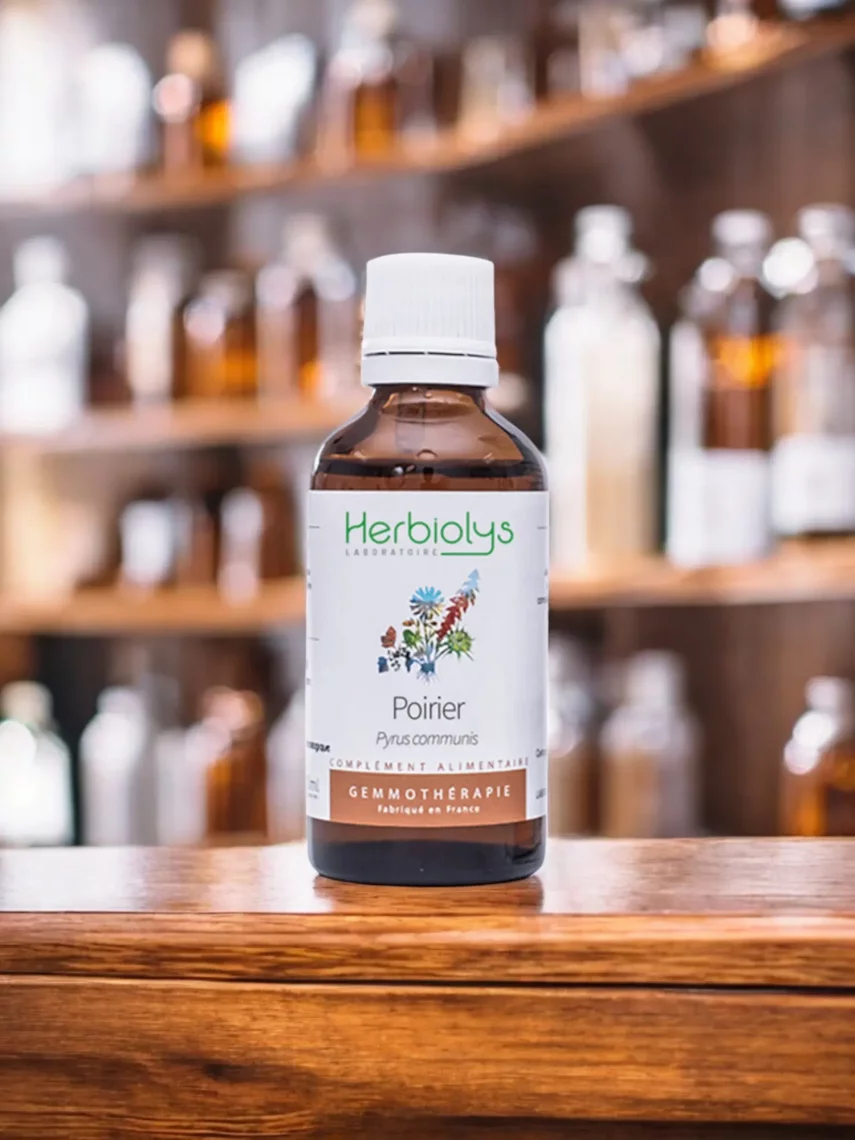 Élaboré à partir de bourgeons frais de Poirier (Pyrus communis), récoltés manuellement en France et mis en macération immédiate sur le lieu de cueillette. Ce procédé artisanal respecte les principes de la gemmothérapie traditionnelle, garantissant une extraction optimale des principes actifs.