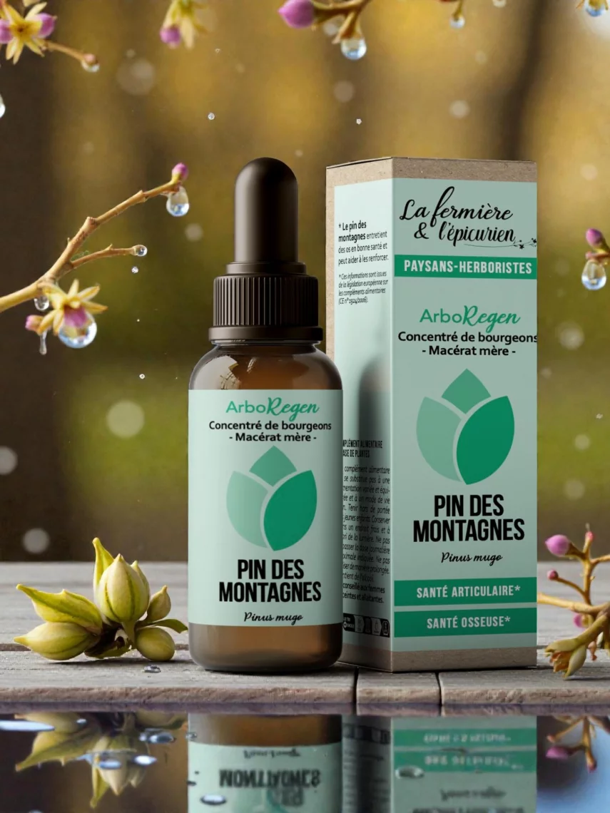 Ce macérat mère est élaboré artisanalement avec des bourgeons frais de pin des montagnes, du miel d’acacia, de l’alcool vinique et de l’eau de source. Le bourgeon est traditionnellement reconnu pour soutenir la respiration, revitaliser le corps et accompagner les fatigues persistantes, notamment en saison froide.