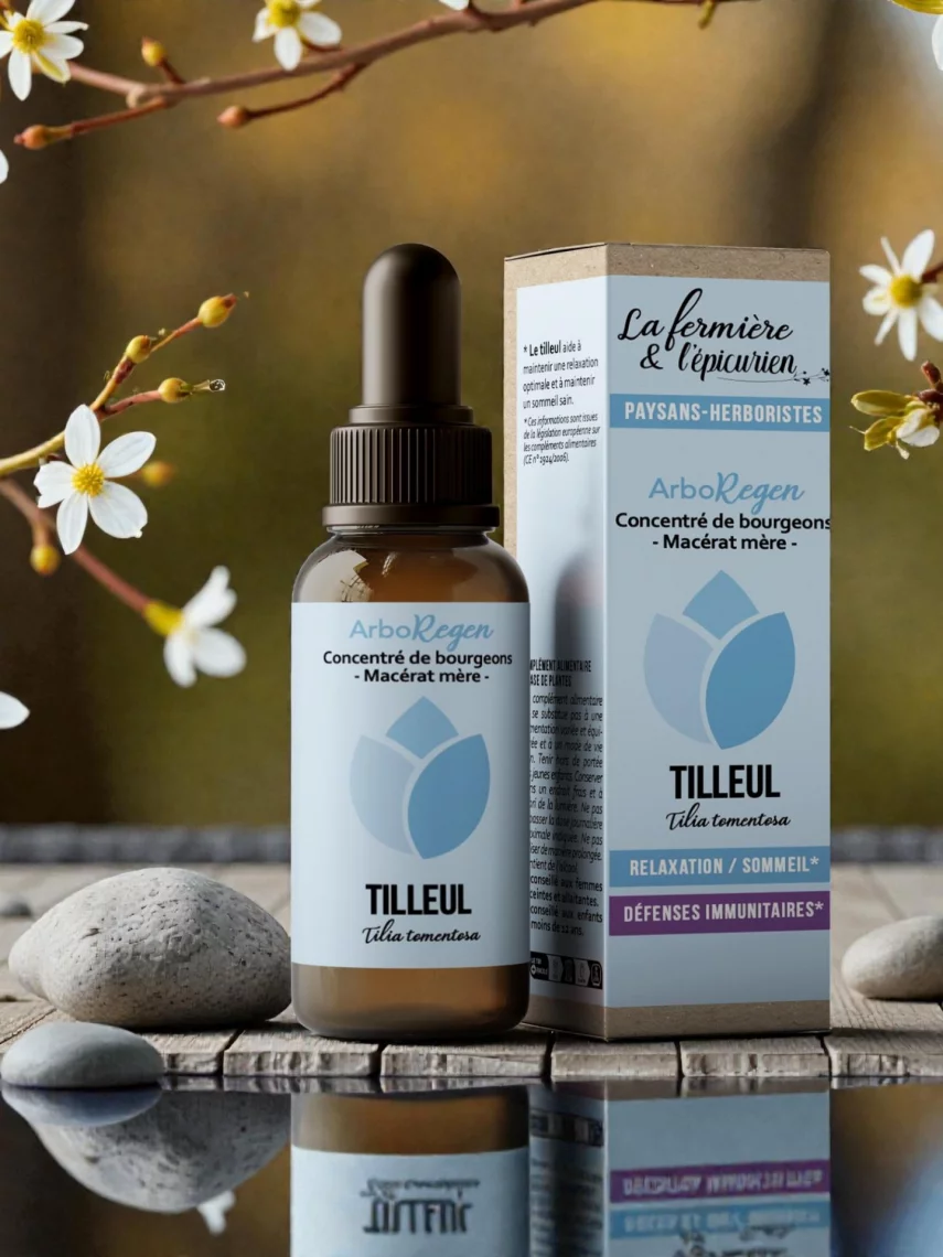 Préparé artisanalement dans l’atelier d’Élise, ce macérat mère associe des bourgeons frais de tilleul, du miel d’acacia, de l’alcool vinique et de l’eau de source. Le tilleul est traditionnellement employé pour apaiser le système nerveux, accompagner les tensions émotionnelles et favoriser un sommeil doux et réparateur.