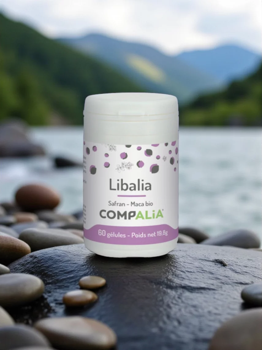 Libalia de Compalia associe quatre plantes aux vertus reconnues pour le bien-être sexuel : Maca bio, Damiana, Tribulus bio et Safran titré en crocine et safranal. Ce complexe contribue à stimuler la libido, améliorer la fertilité et soutenir la vitalité. Produit vegan, sans excipients controversés, fabriqué en France.