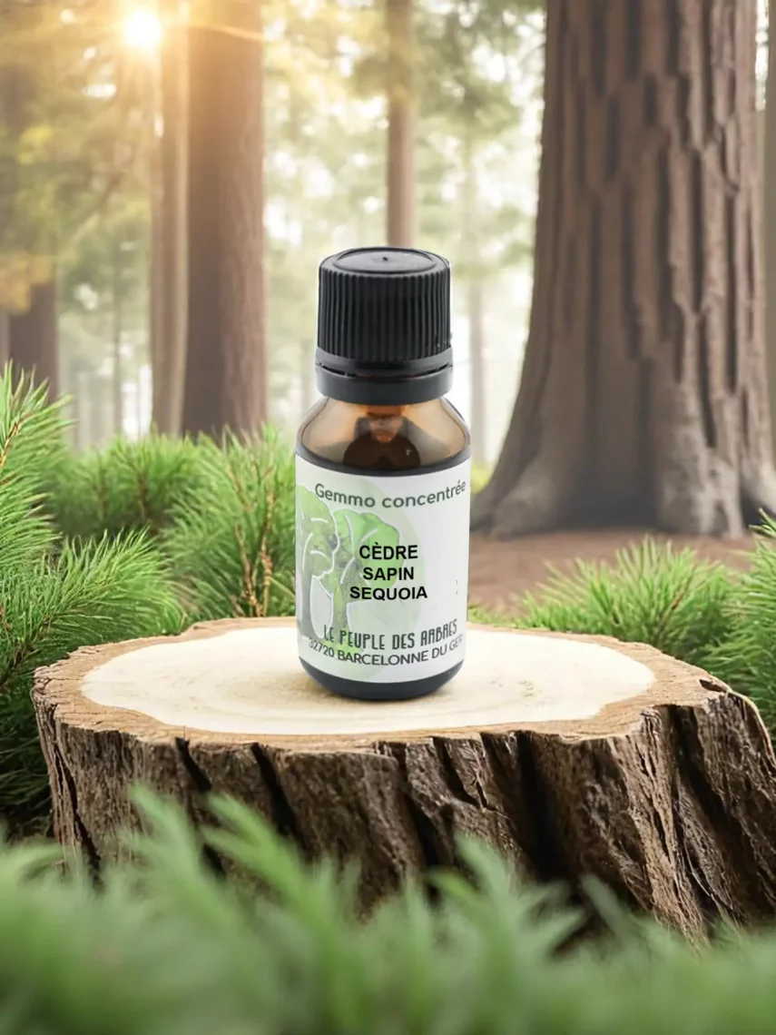 Composition : Macérat complexe "Force vitale & Régénération" – Cèdre, Sapin & Séquoia – Bio – Le Peuple des Arbres