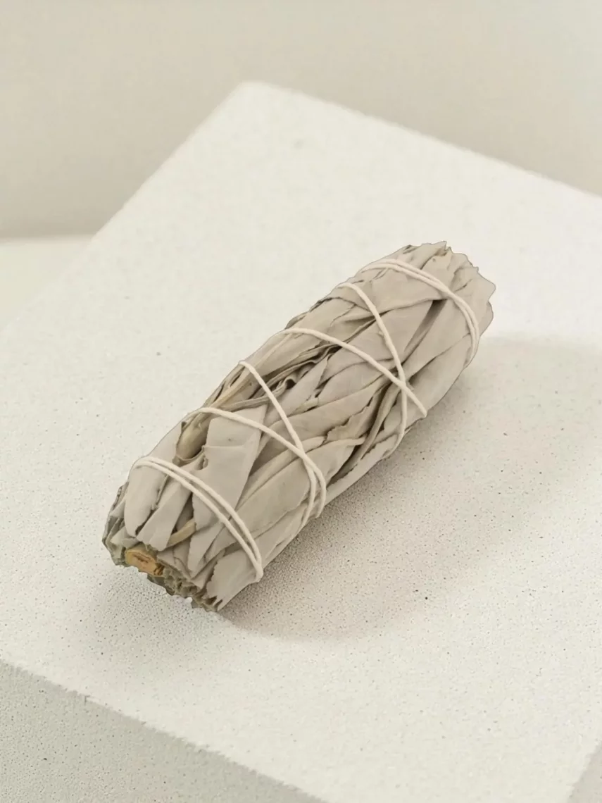 Bâton artisanal de sauge blanche séchée, seule ou associée à des fleurs. Pour purifier les espaces, apaiser l’atmosphère et accompagner vos rituels.