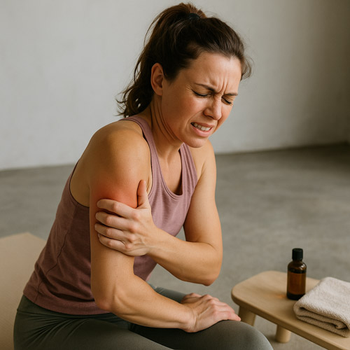 Application externe : massez doucement quelques gouttes d’huile ou un peu de baume sur les zones tendues, 1 à 2 fois par jour.
