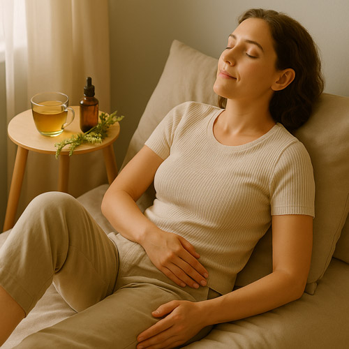 Tisanes drainantes (bouleau, piloselle, chaparral) pour favoriser l’élimination des excès liquidiens.