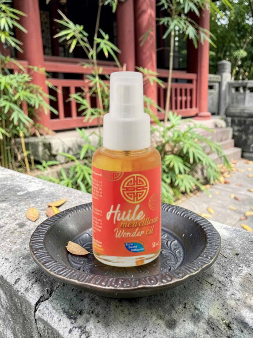 Flacon spray de 50 ml.Conseils d'utilisation : Huile merveilleuse aux 64 huiles essentielles pour muscles, jambes légères et détente