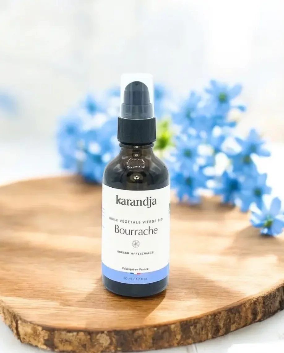 Pour une action nourrissante renforcée, associez l'huile de bourrache à l'huile d'onagre ou à l'huile d'argan. Vous pouvez également consulter notre article de blog sur les bienfaits des huiles végétales pour les soins de la peau et des cheveux.