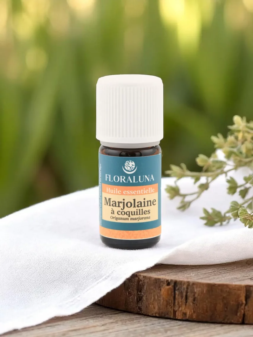 Distillée à partir d’Origanum majorana bio cultivé et transformé par Floraluna, cette huile essentielle est un grand classique de l’aromathérapie pour calmer l’anxiété, l’insomnie, les tensions digestives et musculaires. Certifiée Nature & Progrès.