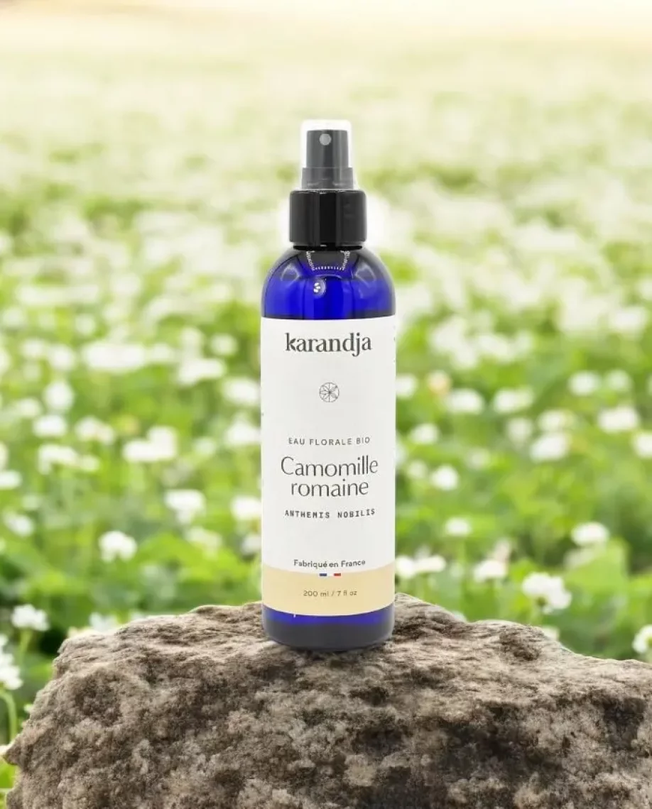 L'eau florale de camomille romaine est produite par Karandja, une entreprise française spécialisée dans les produits naturels et bio. Les fleurs de camomille romaine (Chamaemelum nobile) sont cultivées en France et distillées par leurs soins, garantissant une qualité optimale. Cet hydrolat 100% pur et naturel, sans conservateur, est issu de l'agriculture biologique