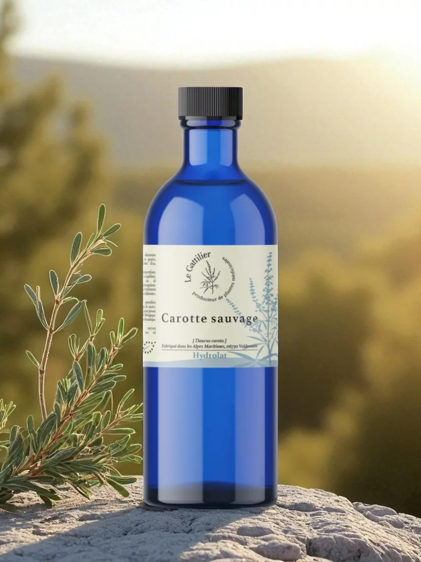 France. Distillé artisanalement par Le Gattilier à partir de plantes entières, selon un procédé doux préservant les actifs subtils et vibratoires.Conditionnement : Hydrolat Carotte sauvage Bio France – Digestif, circulatoire et revitalisant 200 ml