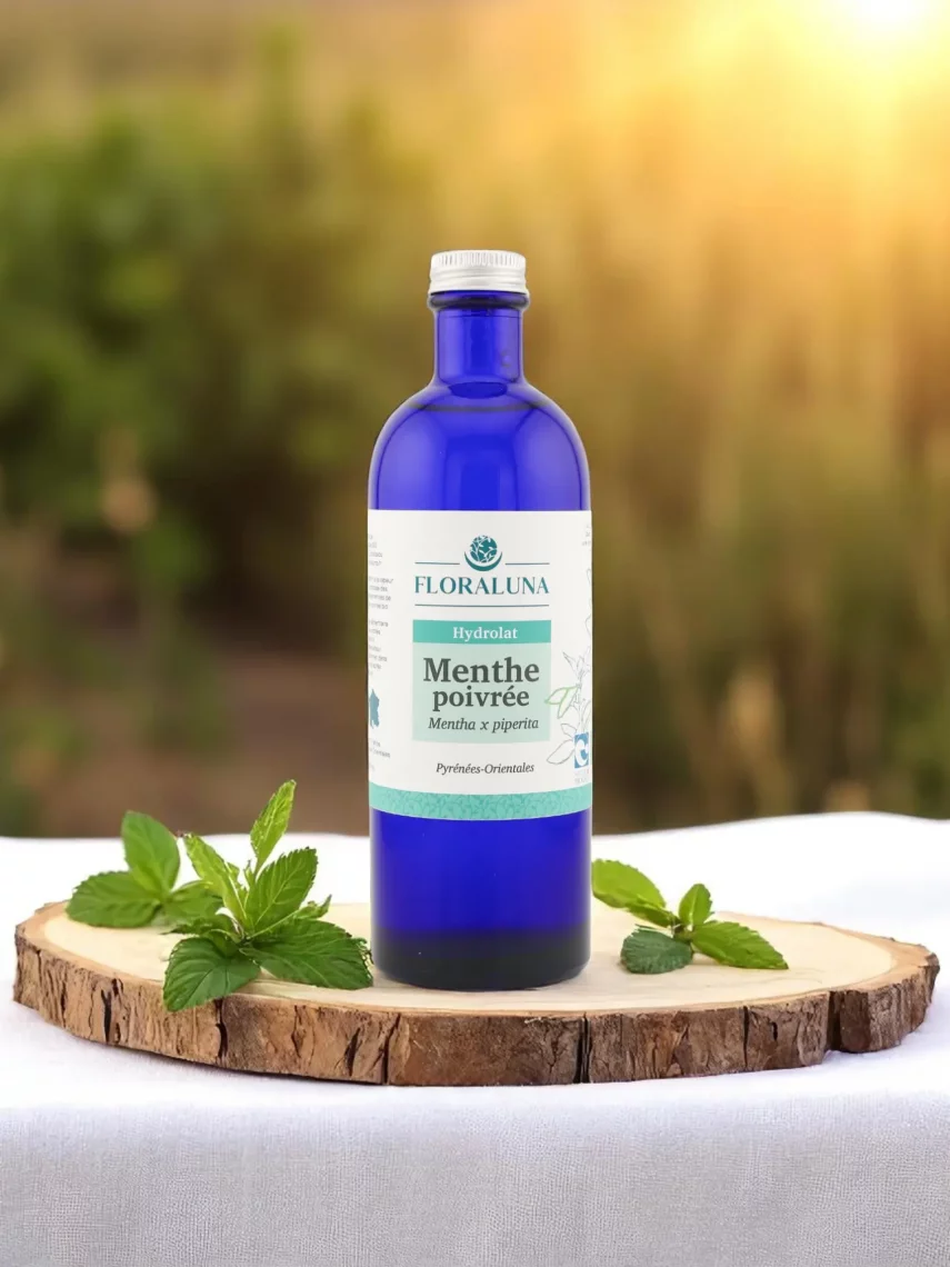 Hydrolat 100% pur de Mentha x piperita cultivée à Prades par Jérôme, maraîcher bio associé. Distillé à l’eau osmosée par Floraluna. Arôme mentholé intense, rafraîchissant, digestif et tonique. Sans conservateur. Certifié AB & Nature & Progrès.