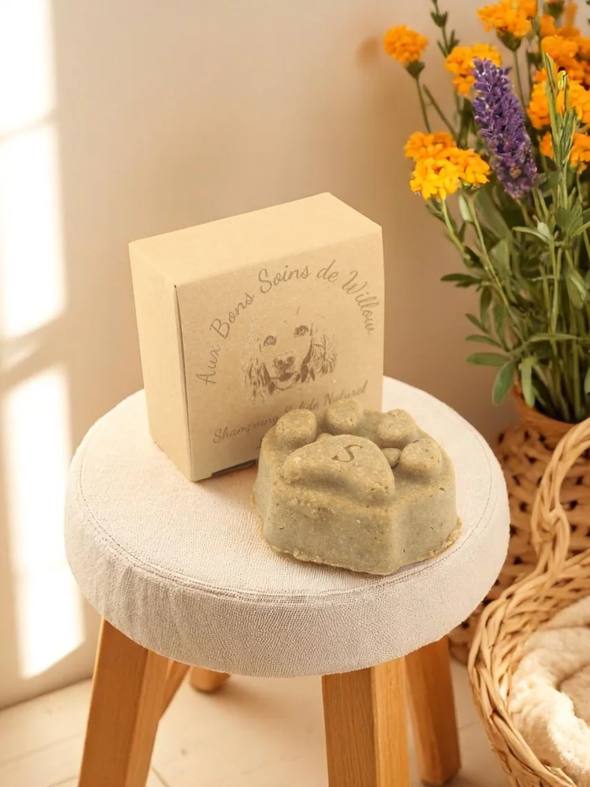 Shampoing solide – environ 70gConseils d'utilisation : Shampoing solide antinœuds naturel pour chiens – huile de ricin & poudres lissantes