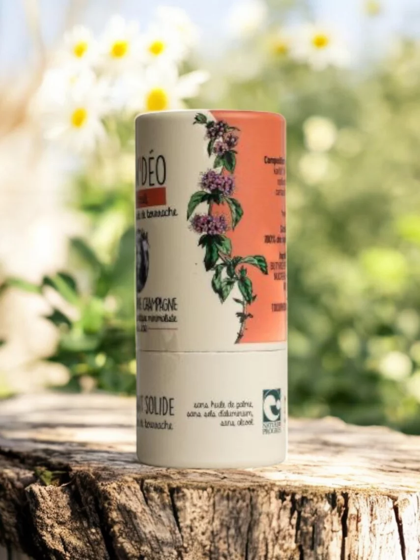 Stick carton recyclable 50 ml ou Pot verre consigné 100 mlConseils d'utilisation : Déodorant solide bio Mon’déo Patchouli – Stick 50 ml & Pot 100 ml – Maison Sidonie Champagne