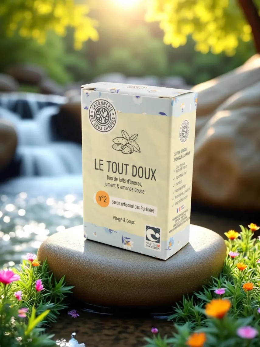 Fabriqué artisanalement dans les Hautes-Pyrénées par la Savonnerie des Eaux Chaudes. Ingrédients locaux et bio dès que possible. Esprit éthique et respectueux du vivant.Conditionnement : Savon lait de jument hydratant – Saponifié à froid – Bio artisanal