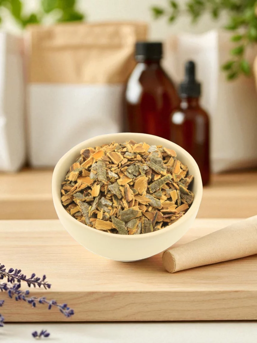 L’écorce de bourdaine (Frangula alnus) contient des anthraquinones (franguline, glucofranguline), tanins, flavonoïdes et mucilages, qui lui confèrent une action laxative douce, non irritante et à effet retard. Elle stimule le péristaltisme intestinal tout en respectant les muqueuses digestives. Une action cholérétique soutient également la sécrétion de bile et la digestion. L’écorce doit être utilisée uniquement après un temps de maturation naturelle (au minimum un an) ou un traitement thermique spécifique, garantissant sa tolérance et son efficacité.