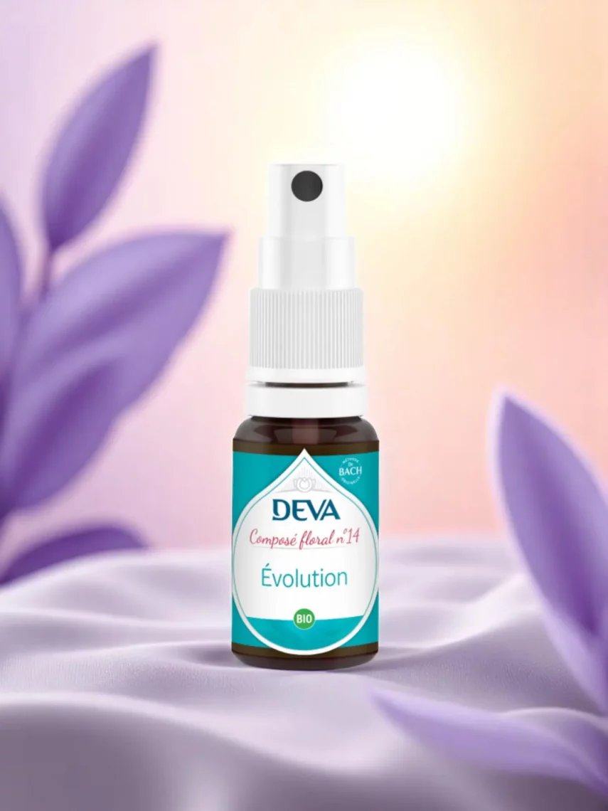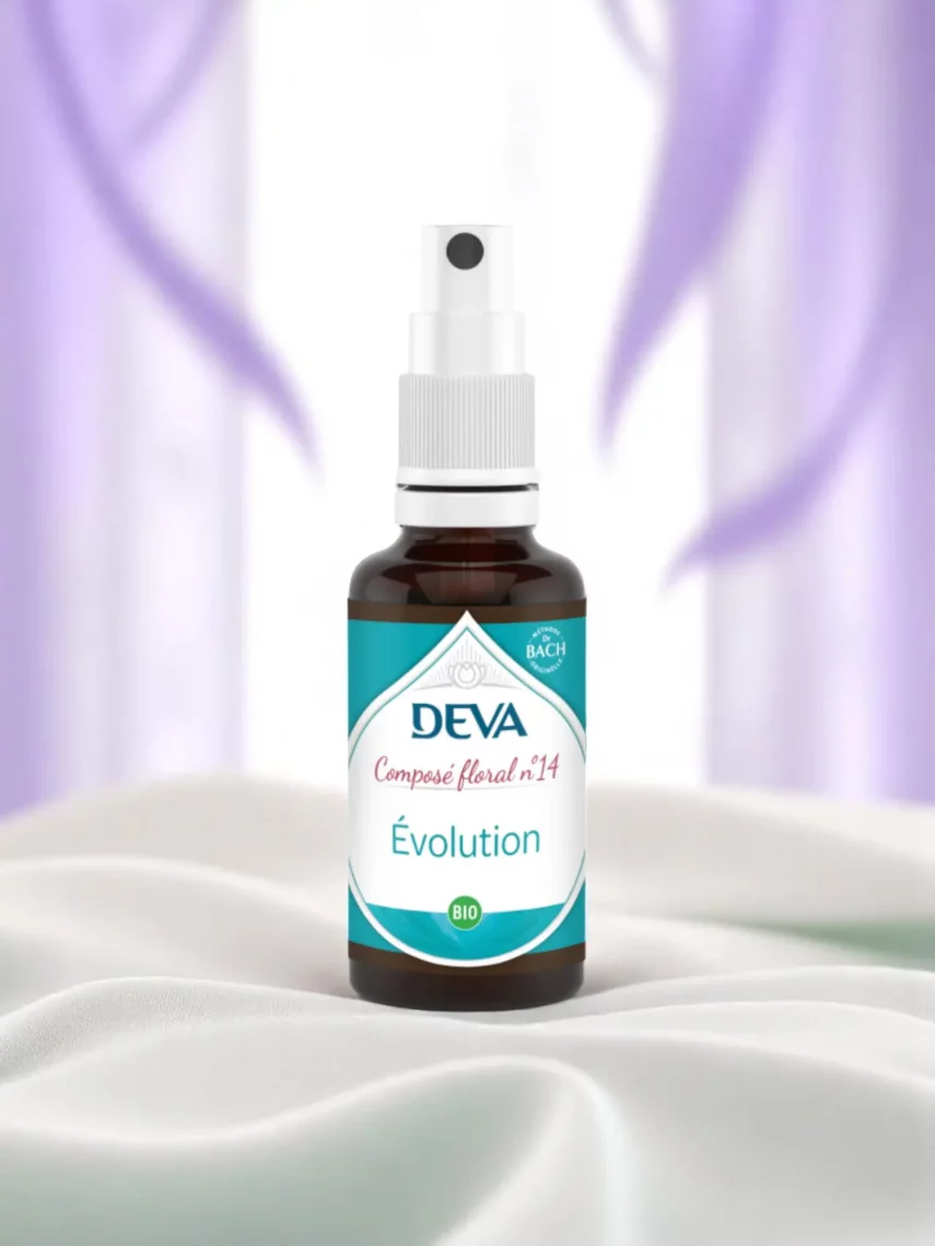 Le composé floral n°14 – Évolution est élaboré par le Laboratoire DEVA, dans les Alpes françaises. Fidèle à la méthode du Dr Bach, DEVA propose une fabrication artisanale, sensible et respectueuse du rythme naturel des plantes et de leur signature énergétique.