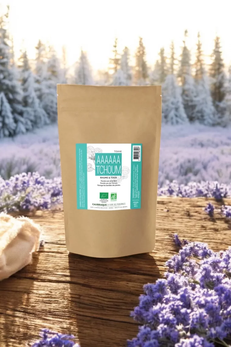 Sachet kraft recyclable de 30gConseils d'utilisation : Tisane Aaaatchoum 30g toux rhume expectorante hysope sureau mauve biologique