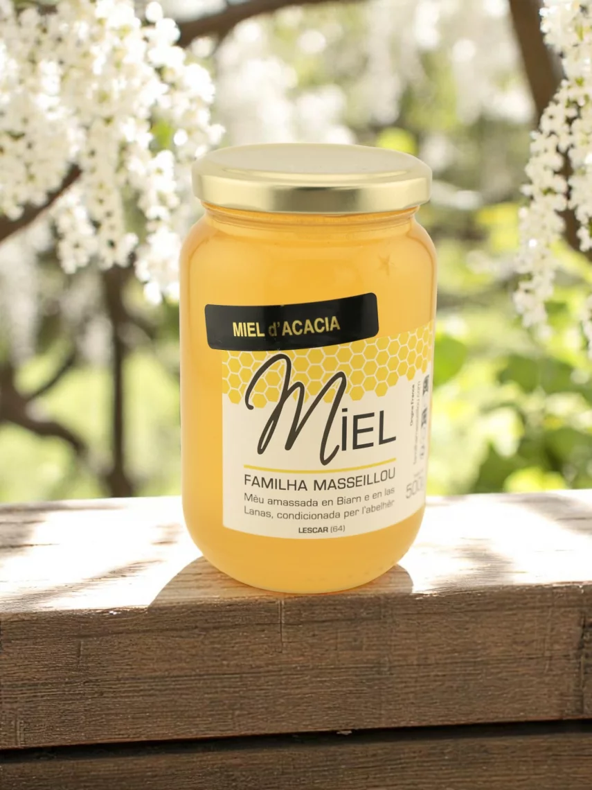 Miel d’Acacia (Robinia pseudoacacia). Rien d'autreOrigine : Miel d’Acacia artisanal 250 g (ou 500 g) Béarn