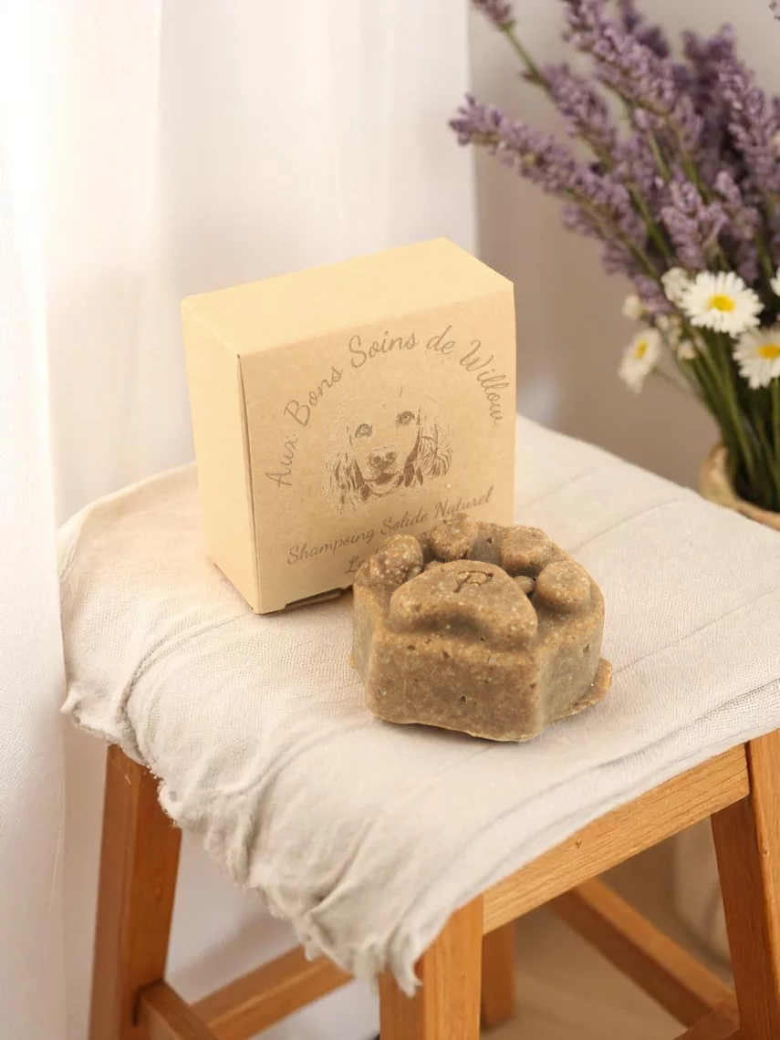 Shampoing solide – environ 70gConseils d'utilisation : Shampoing solide répulsif naturel pour chiens – huile de neem & poudres bio