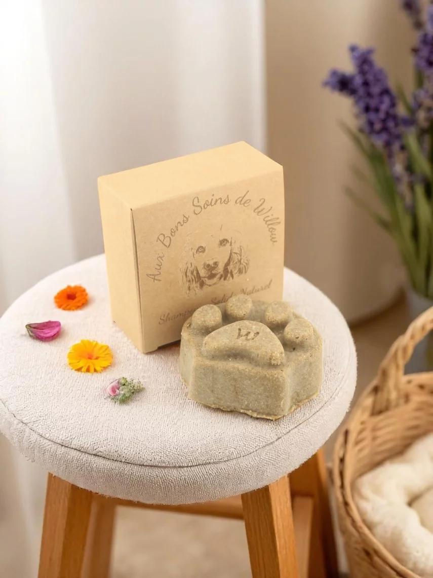 Savon artisanal fabriqué en France par AuxBonsSoinsdeWillow selon un savoir-faire éthique et respectueux de l’environnement. Bien que formulé avec des ingrédients naturels et autorisés Bio, le produit n’est pas labellisé officiellement.Conditionnement : Shampoing solide tout en un pour chiens – ricin & ayurvéda, douceur et protection