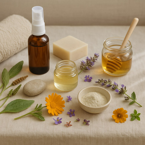 Psoriasis & eczéma : formulations anti‑inflammatoires (calendula, plantain), infusions apaisantes et hydrolats cicatrisants.