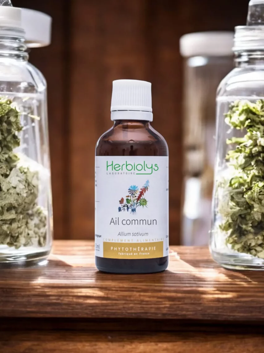 Extrait bio d'ail commun frais, reconnu pour favoriser la santé cardiaque, aider à maintenir un taux normal de cholestérol et réduire la sensation de jambes lourdes.