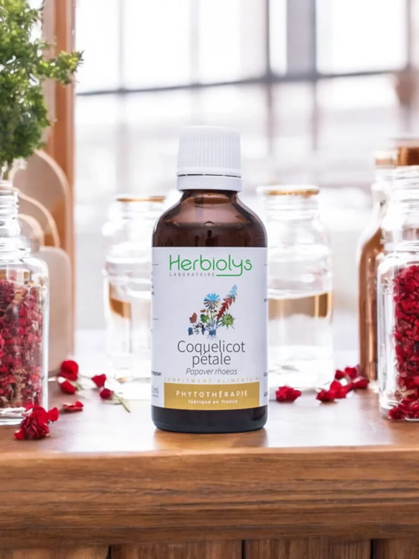 Extrait bio de pétales frais de coquelicot, traditionnellement utilisé pour favoriser la détente, apaiser les voies respiratoires et améliorer le sommeil.