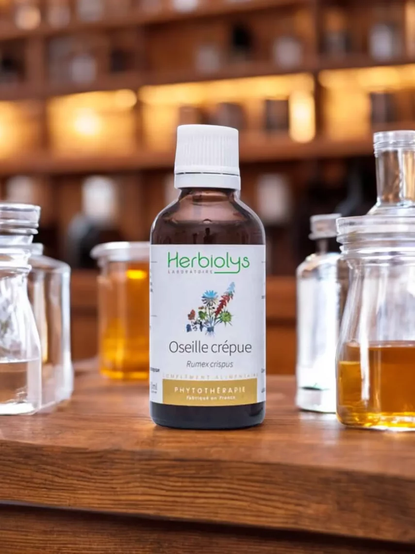 Extrait bio d’oseille crépue, plante traditionnellement utilisée pour favoriser la détox hépatique, soutenir le transit et purifier l’organisme.