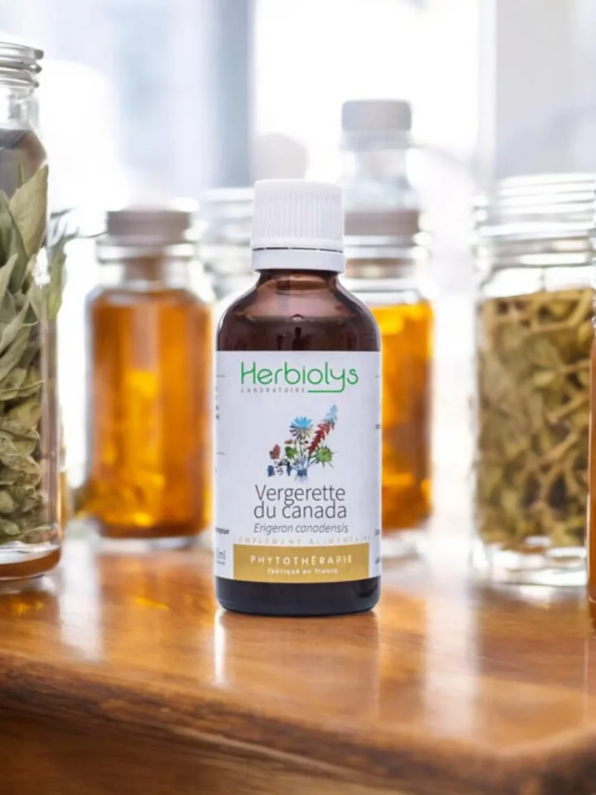 Extrait bio de vergerette du Canada fraîche, utilisée traditionnellement pour drainer les voies urinaires, soulager les inflammations et favoriser l’élimination.