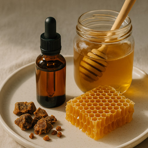 Propolis : en extrait liquide, en gommes ou en sprays pour un usage ciblé.