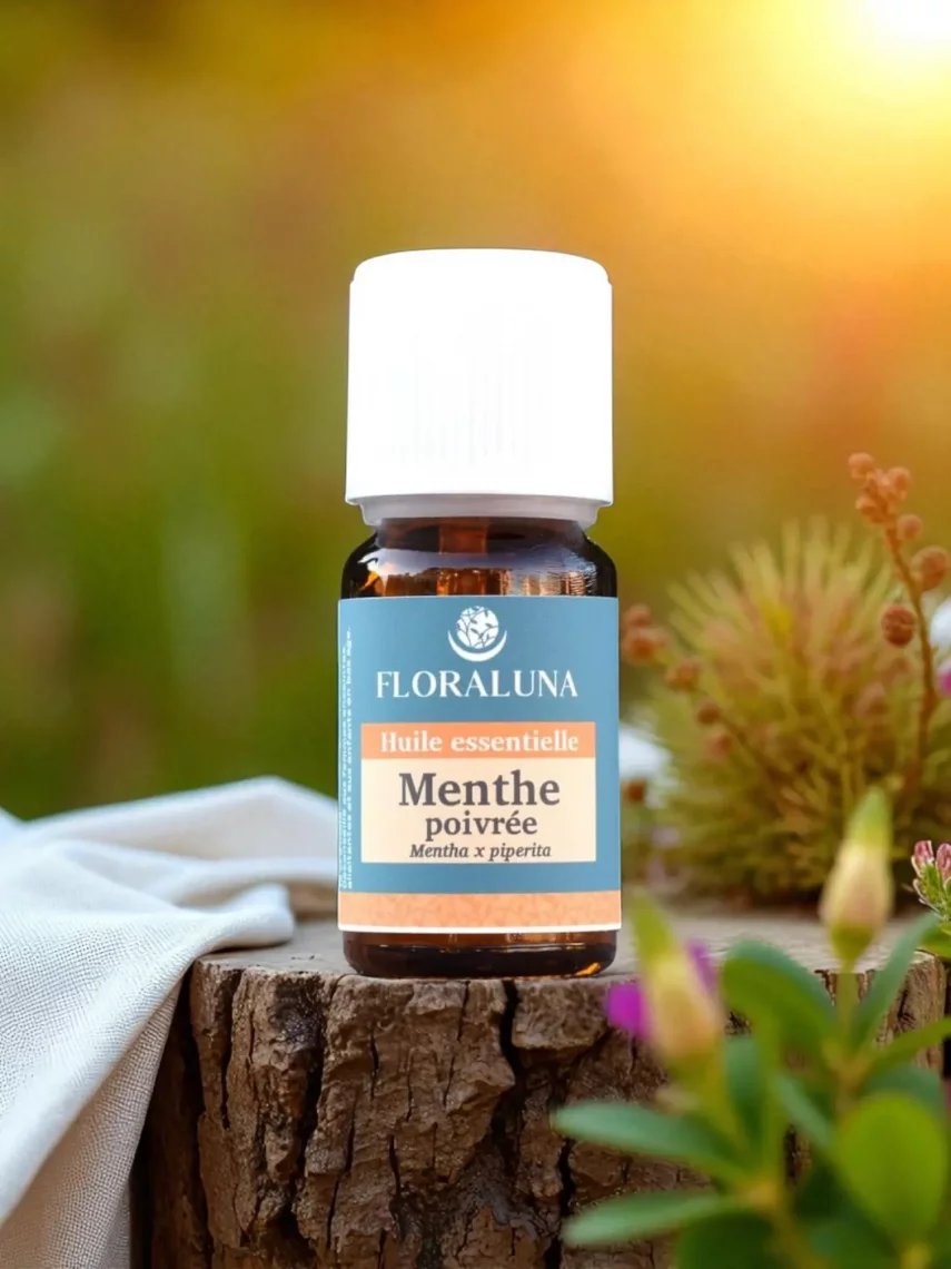 Distillée à la vapeur à partir des feuilles de Mentha × piperita bio, cette huile essentielle est produite artisanalement par Floraluna dans les Pyrénées-Orientales. Elle stimule la digestion, soulage les douleurs et rafraîchit le mental. Certifiée Nature & Progrès.