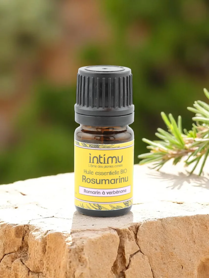 Huile essentielle Romarin à verbénone Intímu 10ml – Rosmarinus officinalis CT verbénone, détox foie & purifiante cutanée, bio