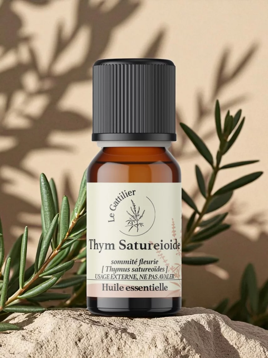Traditionnellement utilisée pour ses propriétés anti-infectieuses majeures, l’huile essentielle de thym saturéoïde est l’une des plus fortes et protectrices. Elle accompagne la lutte contre les infections respiratoires, digestives et cutanées, mais doit toujours être utilisée avec précaution et en dilution.Certifications