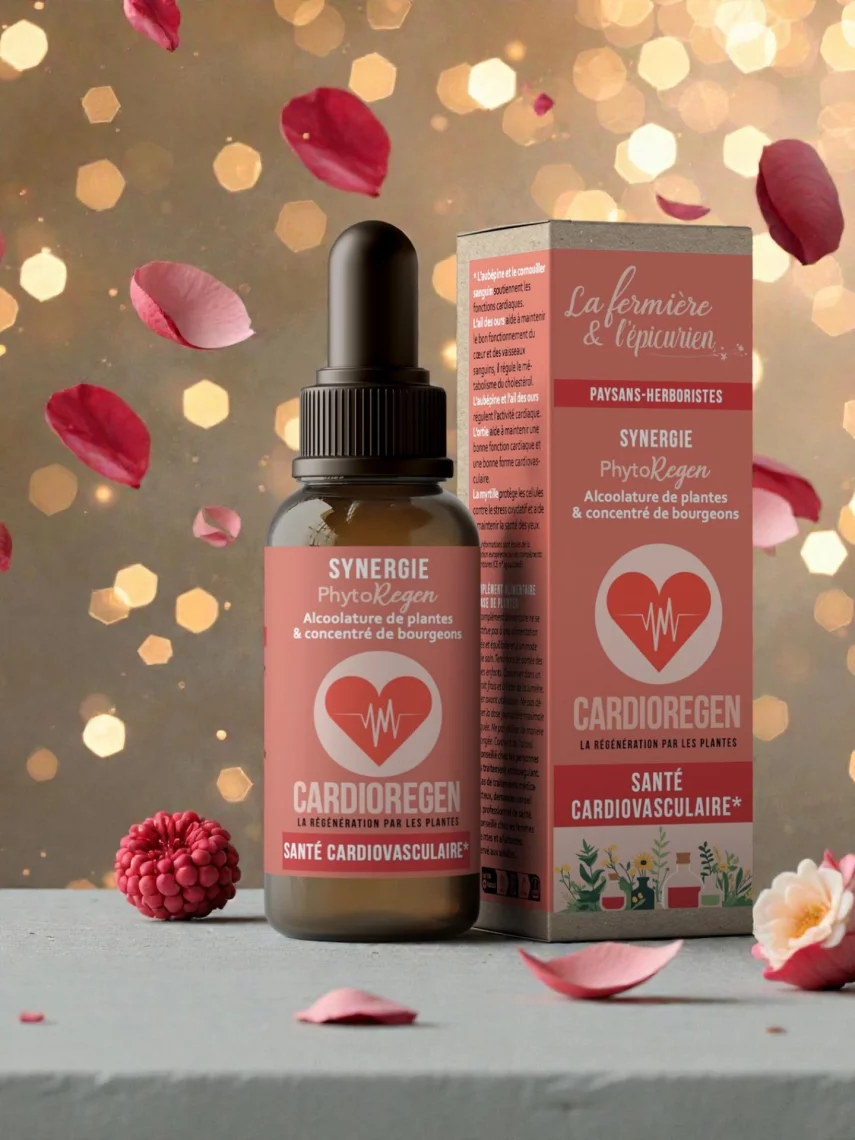 Élaborée en France par une herboriste-paysanne à partir de plantes cultivées ou cueillies localement selon des pratiques artisanales et biologiques. Chaque préparation est réalisée avec soin dans une démarche respectueuse du vivant.Conditionnement : CardioRegen – Synergie Bio cœur et circulation