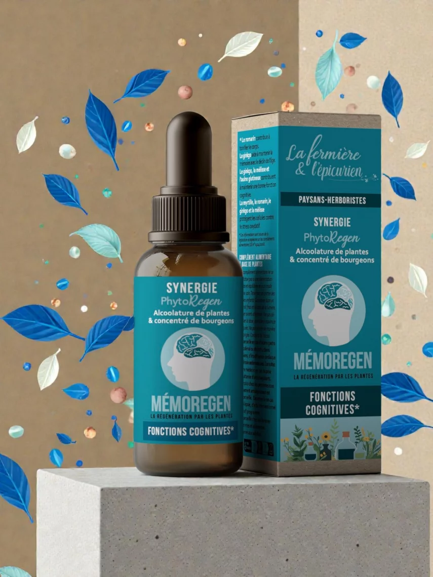 Élaborée en France par une herboriste-paysanne à partir de plantes cultivées ou cueillies localement selon des pratiques artisanales et biologiques. Chaque préparation est réalisée avec soin dans une démarche respectueuse du vivant.Conditionnement : MémoRegen – Synergie Bio mémoire et concentration