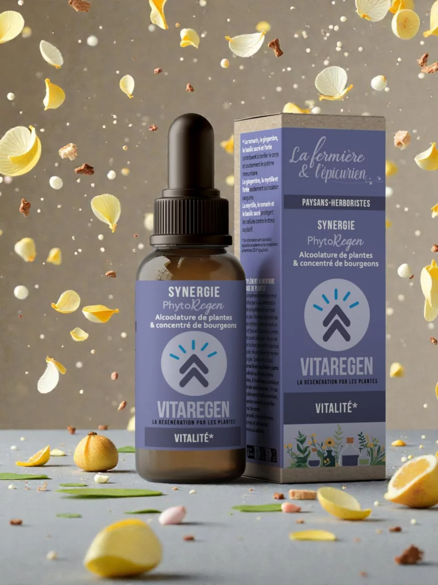 Élaborée en France par une herboriste-paysanne à partir de plantes cultivées ou cueillies localement selon des pratiques artisanales et biologiques. Chaque préparation est réalisée avec soin dans une démarche respectueuse du vivant.Conditionnement : VitaRegen – Synergie Bio énergie et vitalité