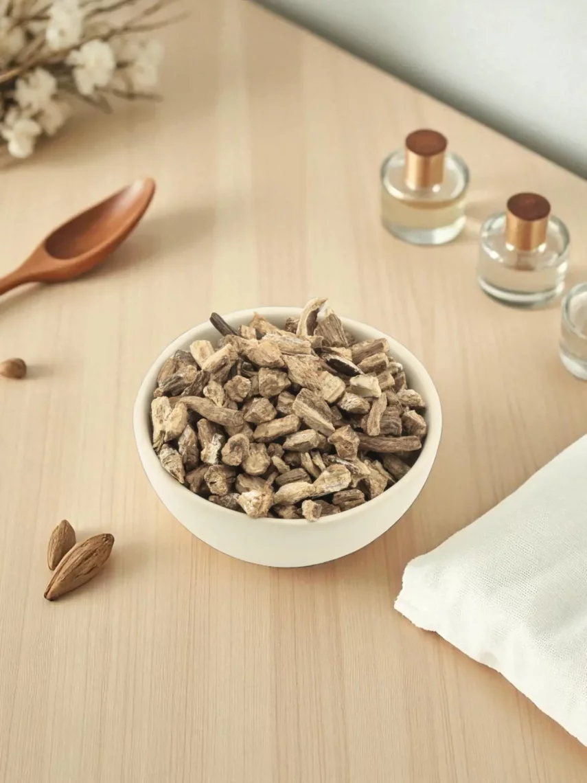 Reconnue pour soutenir les fonctions d’élimination, la bardane (Arctium lappa) est riche en inuline, acides phénoliques et lignanes. Chaque racine est récoltée avec soin, nettoyée, coupée puis lentement séchée. Ce sourcing rigoureux privilégie des producteurs locaux respectueux de la plante et de son environnement, dans une démarche de transparence et de qualité.