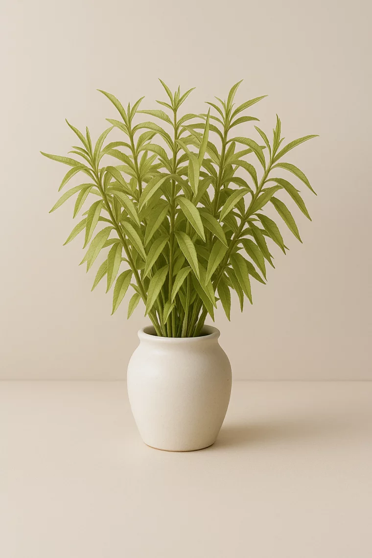 Les feuilles de verveine citronnée (Aloysia citriodora) proposées par l’herboristerie M’aimer dans les Orties sont issues d’une culture biologique française, choisies pour leur parfum vif et leur effet apaisant.