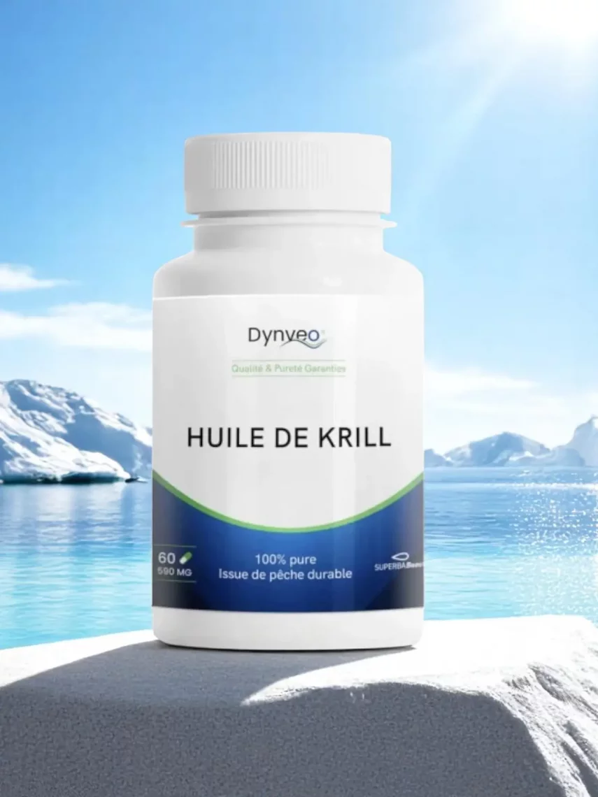 L’huile de krill Dynveo est extraite à froid d’Euphausia superba, petit crustacé de l’Antarctique, sans solvant. Riche en oméga-3 (EPA, DHA), phospholipides et astaxanthine, elle présente une biodisponibilité et une stabilité supérieures à celle des huiles de poisson classiques. Chaque capsule contient 500mg d’huile pure, sans additifs, sans OGM, non irradiée. Produit formulé et conditionné en France.